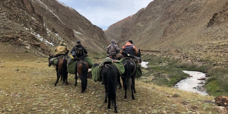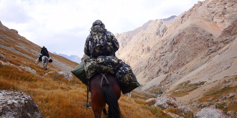 Hunting in Kyrgyzstan requires a lot of horse riding. Expect extensive horseback riding 8–10 hours a day and considerable walking. Some riding experience is a must. During the day you will explore the upper edges of the mountains and examine the hillsides and feeding areas through the field glasses. Trophies are generally located in remote country at 9,000 feet. Once the trophy is spotted you complete your stalk on foot. Physical condition is an important factor in the stalking part of the hunt. Long range shooting, up to 500 yards is usual.